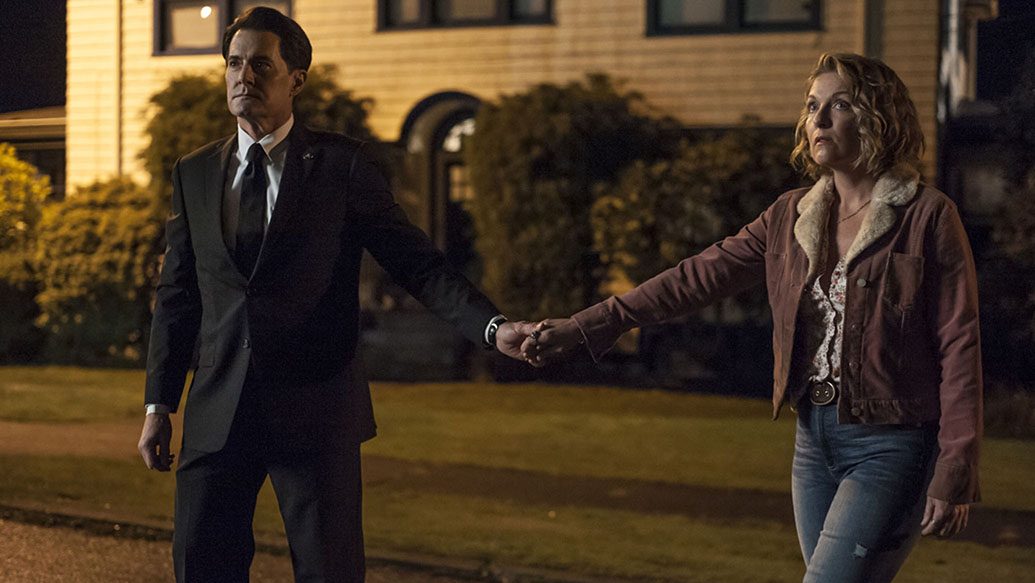 I had a tough time keeping track of all the various subplots and clues and mysteries, but in many ways, I think they’re breadcrumbs to an empty shelf. Half of them don’t have any conclusion. Others lead to nowhere. Sure, there might be a “true” way to interpret the series and the incredibly confusing finale, but I don’t know if I care to piece them all together. The emotional message is clear, and I think it’s best summed up by the Audrey subplot. Audrey, a character whose goals always seemed unknowable in the original series, returns in a strange vacuum in which all her scenes consist of her angrily swearing at her “husband,” who seems to double as some sort of therapist. She talks again and again about returning to the Roadhouse but never leaves her husband’s office. Towards the end of the season, Audrey finally appears on the dancefloor, as her theme from the original show is played live by the band. She begins to dance, but something is wrong. Her expression shifts to fear and we smash cut to her horrified face in a mirror, surrounded by white. The implication is obvious, but I just wanted to share how unsettling I found this subplot/scene. I can’t think of anything scarier than being swallowed up by ego or regret, driven mad by the desperate desire to go back to so-called simpler times.