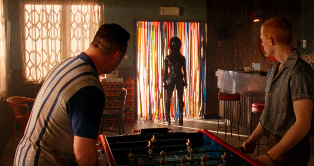 Still, while the style exuded here could be individually traced to any number of psychedelic European Bond knockoffs or Italian deep cuts, it is just as easily comparable to more popular films; there are Kubrickian zooms, roaming and hypnotic shots of black and white tile à la Twin Peaks, and a hyperreal, vibrant color palette that Argento would be proud of. And if not a direct influence, only Refn could fully appreciate placing the squeaking of Serpentik’s rubber so high in the mix.